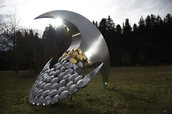 Materialien wie Edelstahl; Glas, Stein, Holz, Gold, usw., Werke von überraschendem
